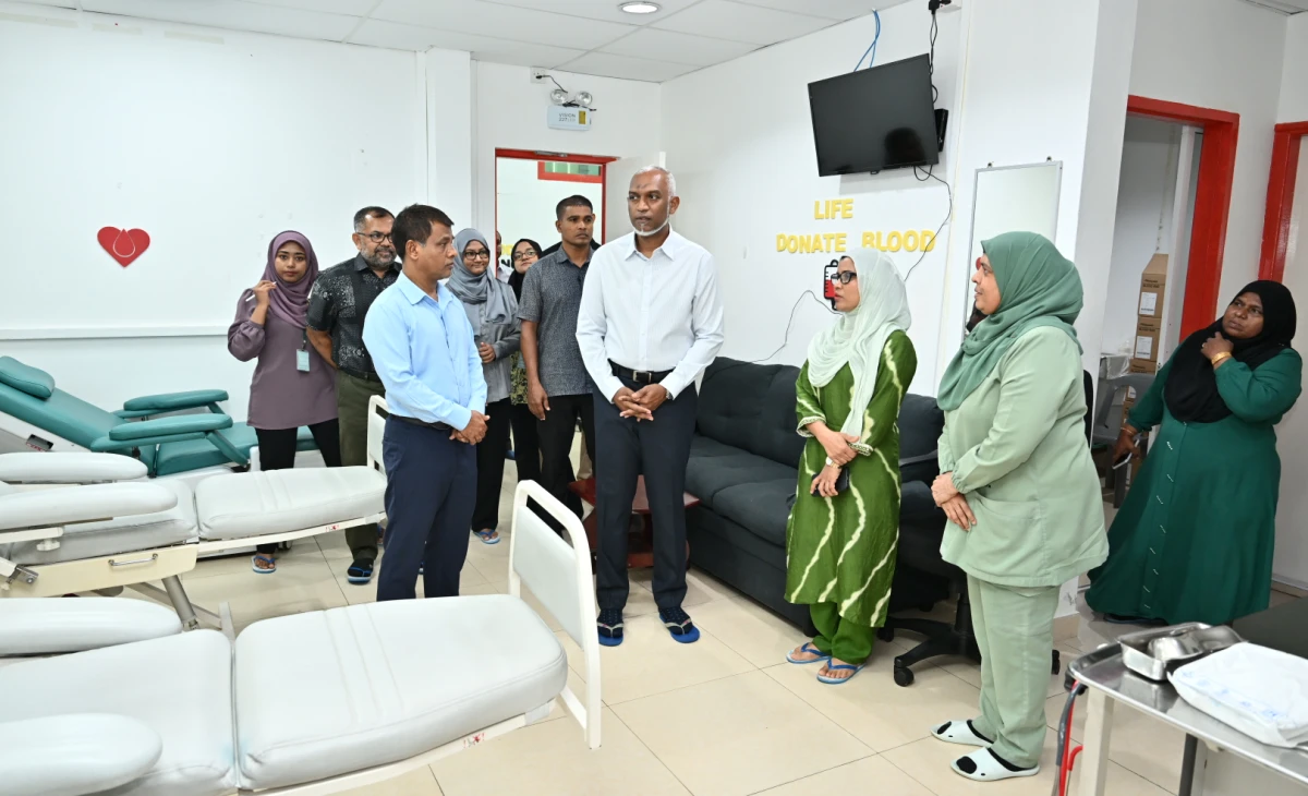 President Dr Mohamed Muizzu paid a visit to the National Thalassemia Centre on Sunday morning, amid growing public concern over the quality of care provided to patients at the facility.