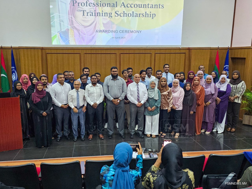 The scholarships were officially awarded during a ceremony held at the Central Auditorium of Maldives National University (MNU), where Minister of Higher Education, Labour and Skills Development Dr Ali Haidar Ahmed handed over the awards. The event was attended by senior officials from the Ministry and the Institute of Chartered Accountants of the Maldives (ICAM), which is also providing technical support for the programme.
