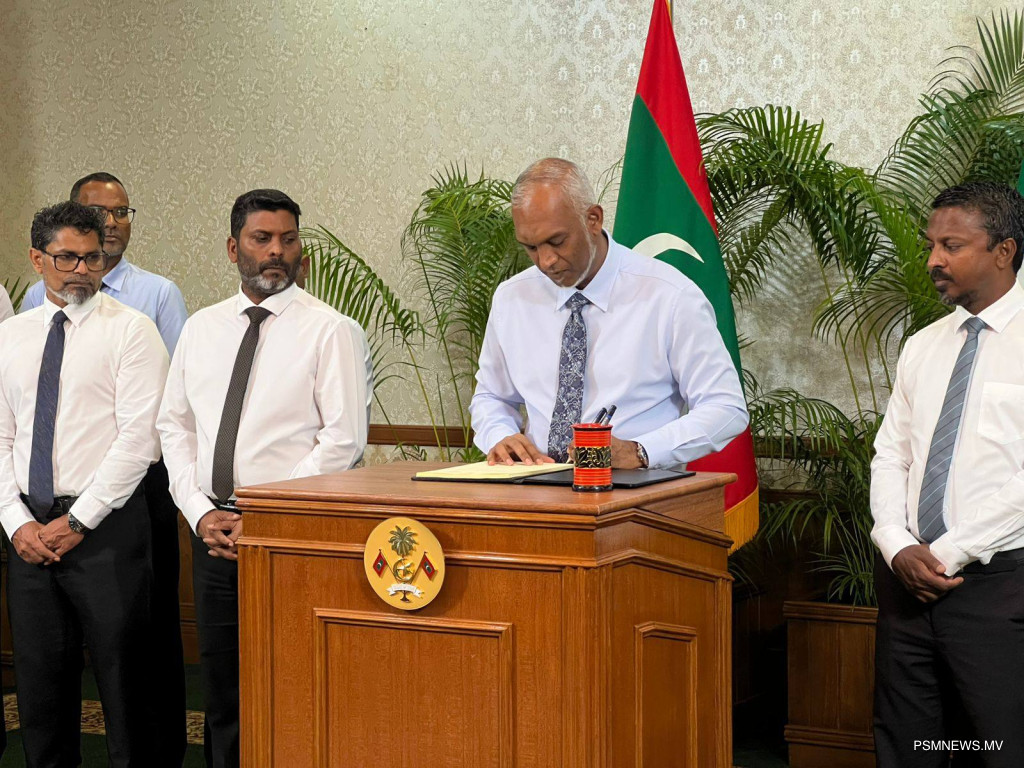 The ratification ceremony, held at the President’s Office, was attended by top government and sports officials, including Attorney General Ahmed Usham, Sports Minister Abdulla Rafiu, the Commissioner of Sports, and heads of national sporting bodies. Notably, the event marked President Muizzu’s first live ratification in the presence of media since taking office.