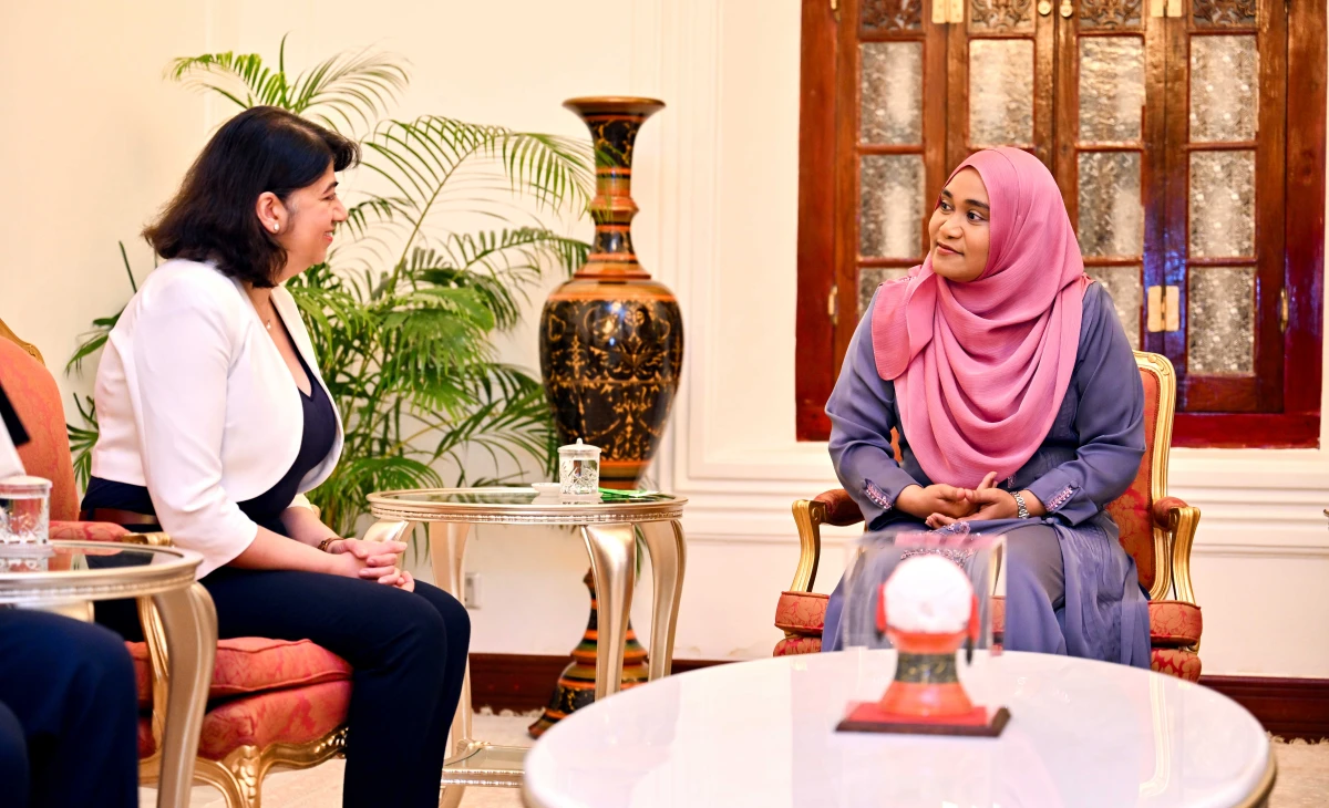 United Kingdom Parliamentary Under-Secretary of State for the Foreign, Commonwealth and Development Office (FCDO), Seema Malhotra MP, paid a courtesy call on First Lady Sajidha Mohamed on Sunday morning at Mulee’aage.