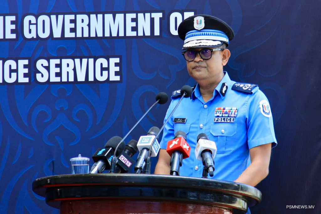 Maldives’ Police Commissioner Ali Shujau speaking at the vehicles’ handover ceremony held today. // Photo: PSM